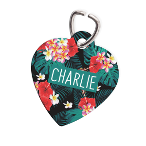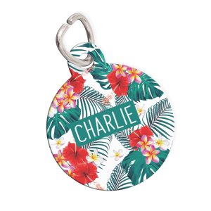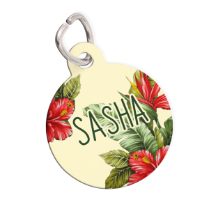 Personalised Pet ID Tag-Tropical Leaves & Red Flowers