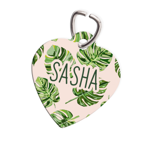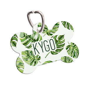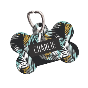 Personalised Pet ID Tag-Tropical Dark Color with Palm Leaves